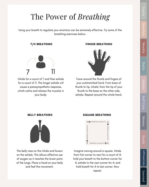 journal prompts, affirmations, worksheets, coloring pages, journal inserts, challenges etc.